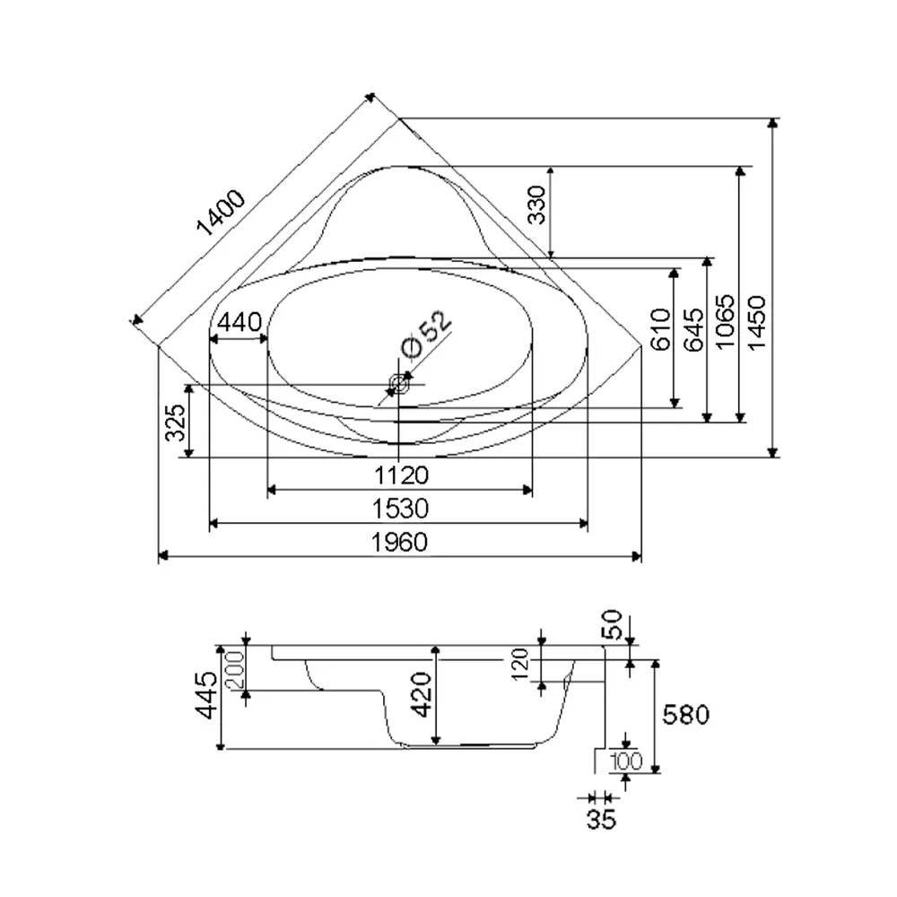 Badewanne - Coralia, Alpinweiß, 1400x1400 mm