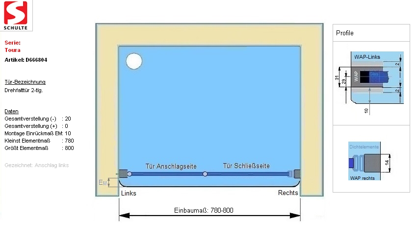 - Duschwanneneinbaumaß (rechts) 780-800 mm