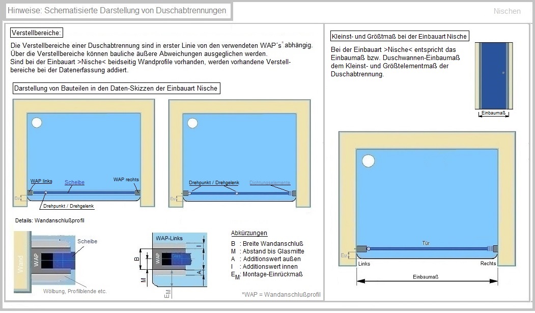 • Duschabtrennungen/ Badewannenaufsätze sind für die Installation an massiven Wänden und Decken bestimmt.