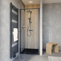 - versetzter Drehpunkt der Tür eignet sich optimale bei bestehenden Regalen, Waschtischen, Heizkörpern etc. im Wandanschlussbereich vor der Duschtür