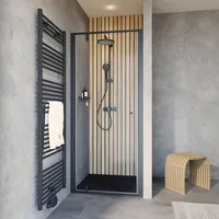 Trend 2.0 - Drehpunkttür in Nische, 900 mm, 2000 mm, Mattschwarz, Klar hell, versiegelt