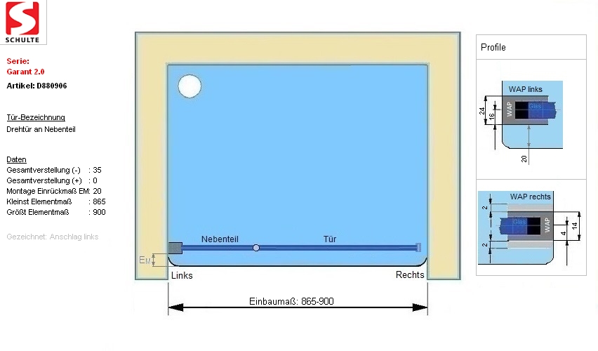 - Duschwanneneinbaumaß (rechts) 865-900 mm
