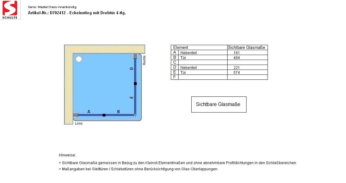 - Modell Eckeinstieg mit Drehtür 4-tlg.