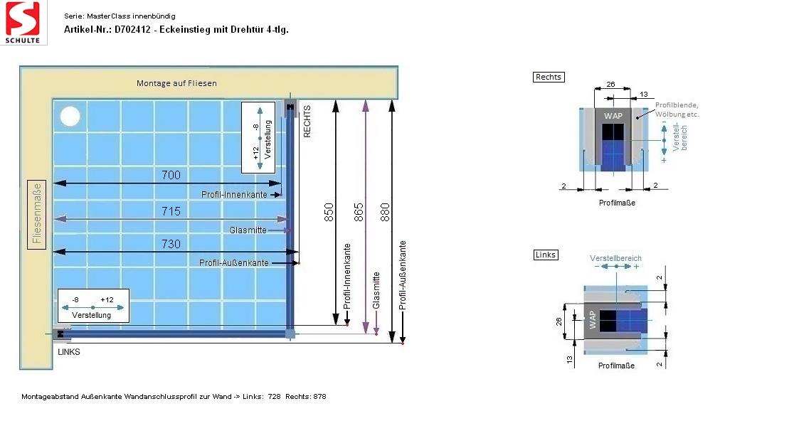 - Wandanschlussprofilbreite (rechts) 26 mm