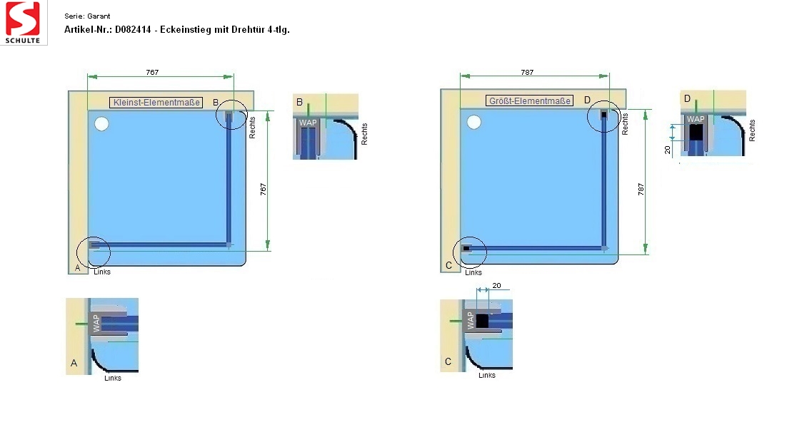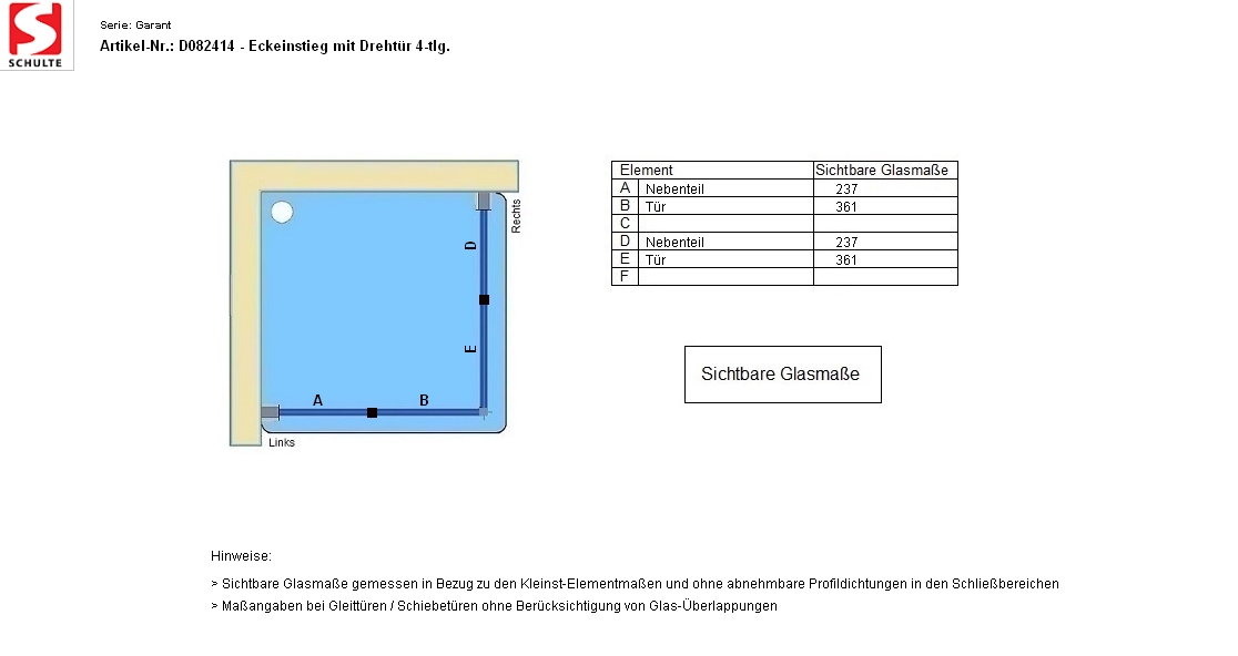 - Modell Eckeinstieg mit Drehtür 4-tlg.