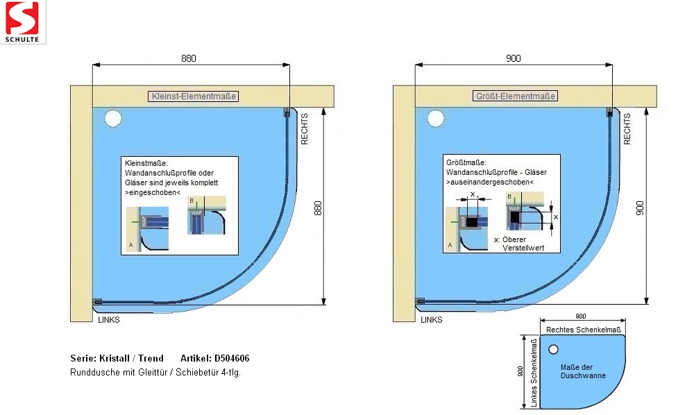 - Modell Runddusche mit Gleittür / Schiebetür 4-tlg.