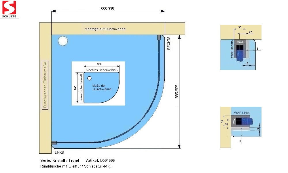 - Duschwanneneinbaumaß (rechts) 885-905 mm