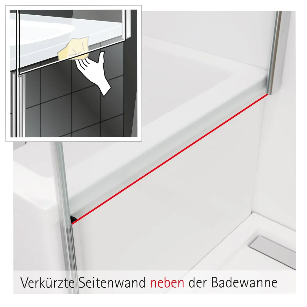 - Einfache Reinigung dank verkürzter Seitenwand neben der Badewanne