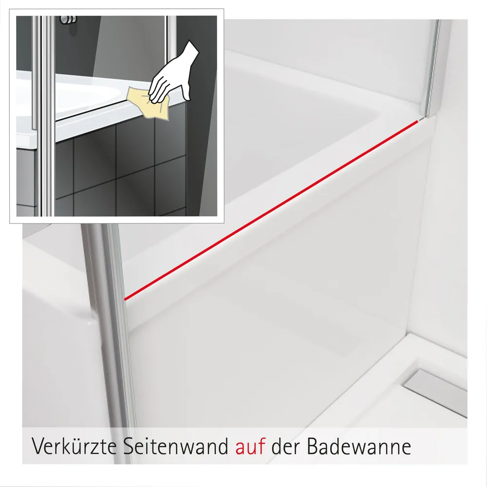 - Verkürzte Seitenwand auf der Badewanne für formschönen Abschluss