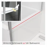 MasterClass - verkürzte Seitenwand auf Badewanne, 250-1300 mm, Pendelscharnier „Eckig“, Chromoptik, Klar hell