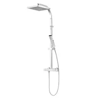 Der markante DuschMaster Rain II mit Thermostat im typischen SQUARE-Design punktet mit seinen klaren Linien und eckigen Brausen. Sie erhalten eine feststehende, aber kippbare, Tellerkopfbrause, die eine angenehme Regendusche erzeugt und eine Handbrause, die an einer höhenverstellbaren Befestigung eingehängt werden kann. Das Thermostat ermöglicht eine zuverlässige Einstellung der Temperatur.
