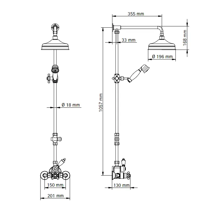 Die markante Tellerkopfbrause und passende Handbrause im Retrolook verleihen jedem Bad eine unvergleichliche, stilvolle Atmosphäre.