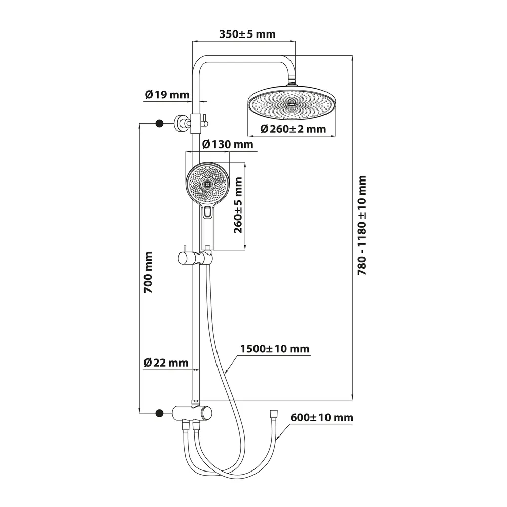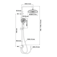 26 cm große Kopfbrause mit Kugelgelenk und flexible Handbrause mit drei Strahlarten für individuellen Duschkomfort.