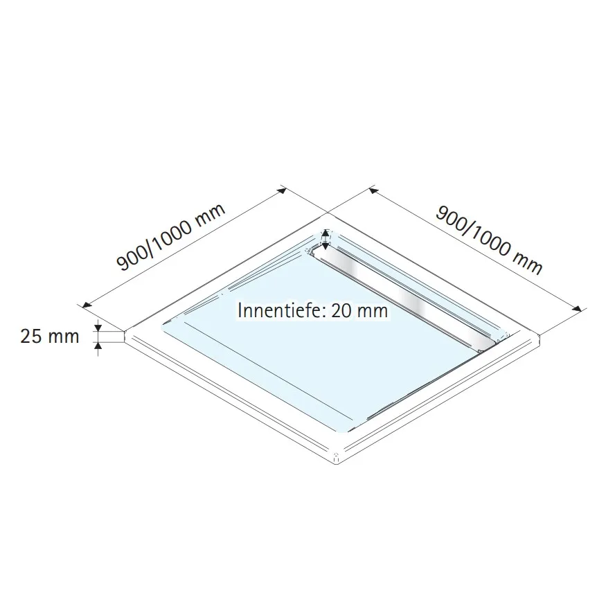 Duschwanne aus Sanitär-Acryl - Quadrat, Alpinweiß, mit Rinne in Alpinweiß, 900x900 mm