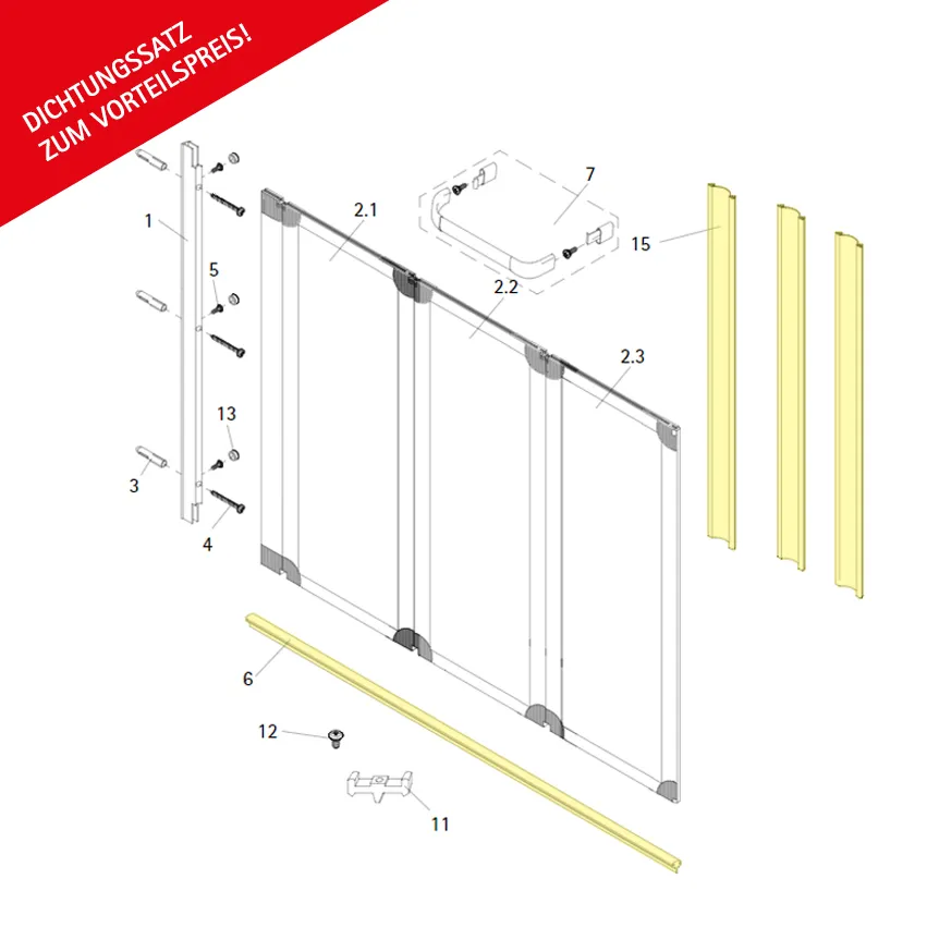 Dichtungssatz für 3 mm Badewannenfaltwand, teilgerahmt, 3-teilig (Alu-Natur)