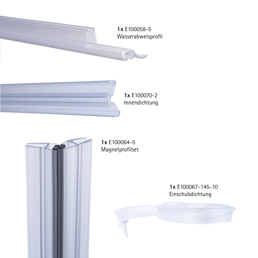 Zur kompletten Erneuerung der Abdichtungen Ihrer Fünfeckdusche der Serie Alexa Style 2.0. Mit dem Einsatz dieses Dichtungssatzes wird ein zuverlässiger Spritzschutz erreicht.