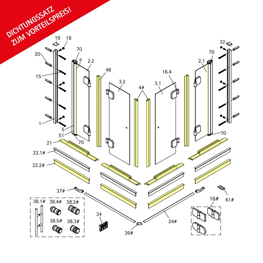 Dichtungssatz für 6 mm Drehfalttür als Eckeinstieg