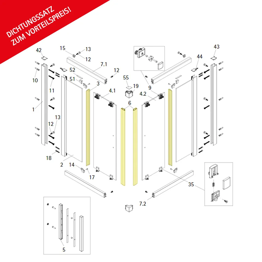 Dichtungssatz für 6 mm Eckeinstieg II, 4-teilig