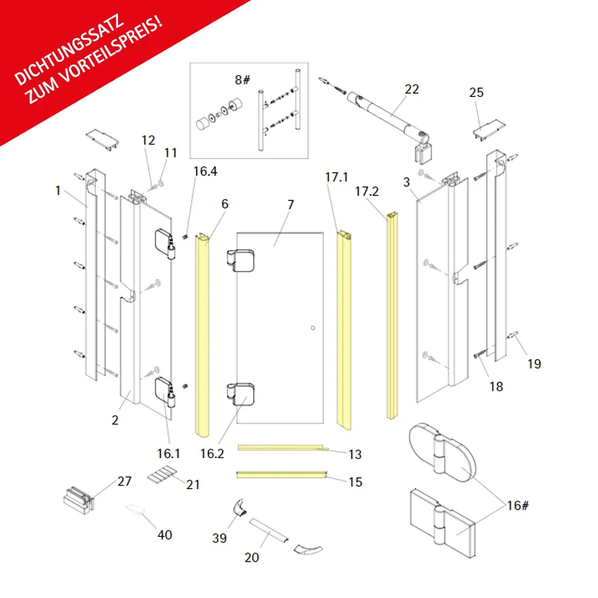 13 15 17.1# 17.2# | Wasserabweisprofil Einschubdichtung Magnetprofil |