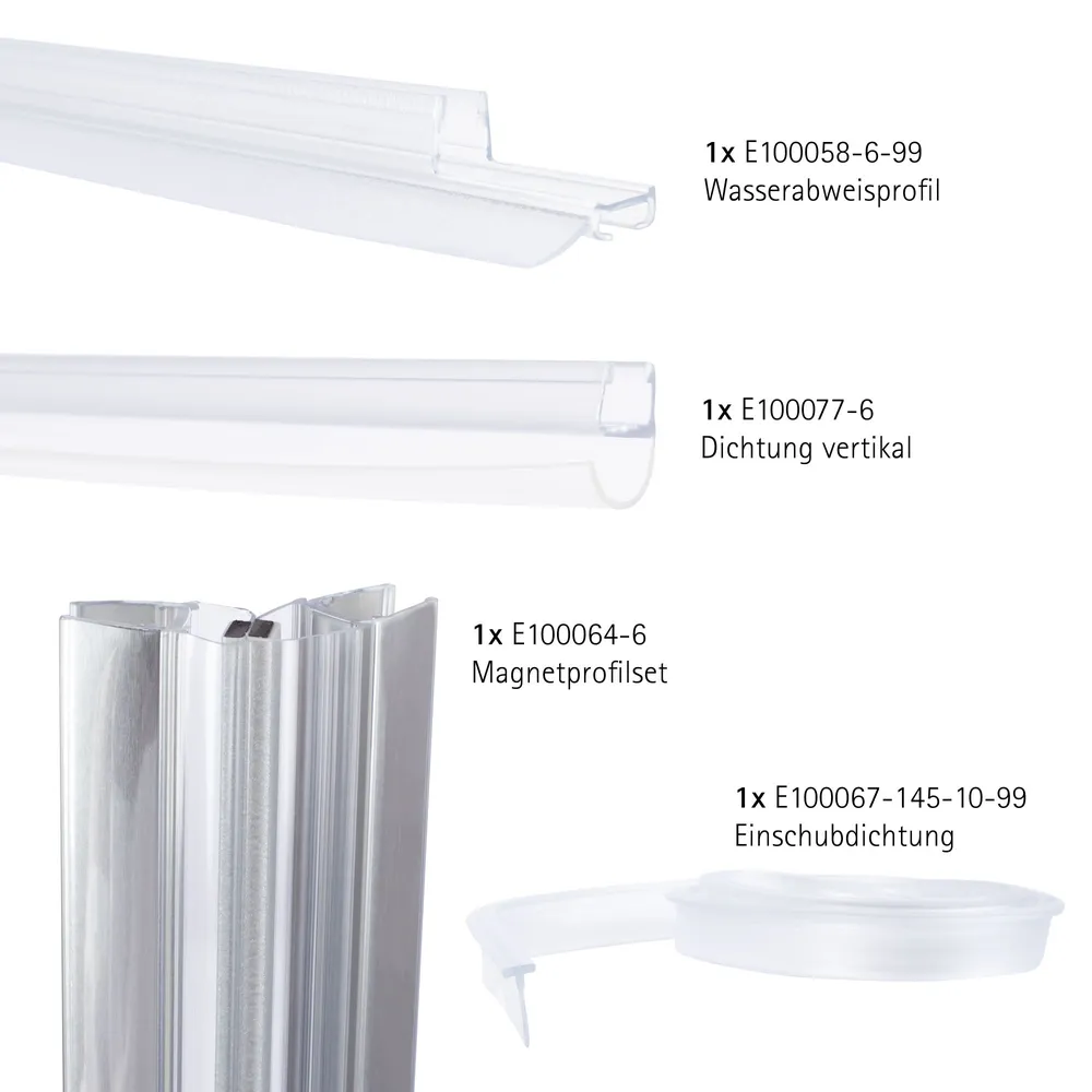 Zur kompletten Erneuerung der Abdichtungen Ihrer Fünfeckdusche, 3-teilig aus der Serie MasterClass. Mit dem Einsatz dieses Dichtungssatzes wird ein zuverlässiger Spritzschutz erreicht.