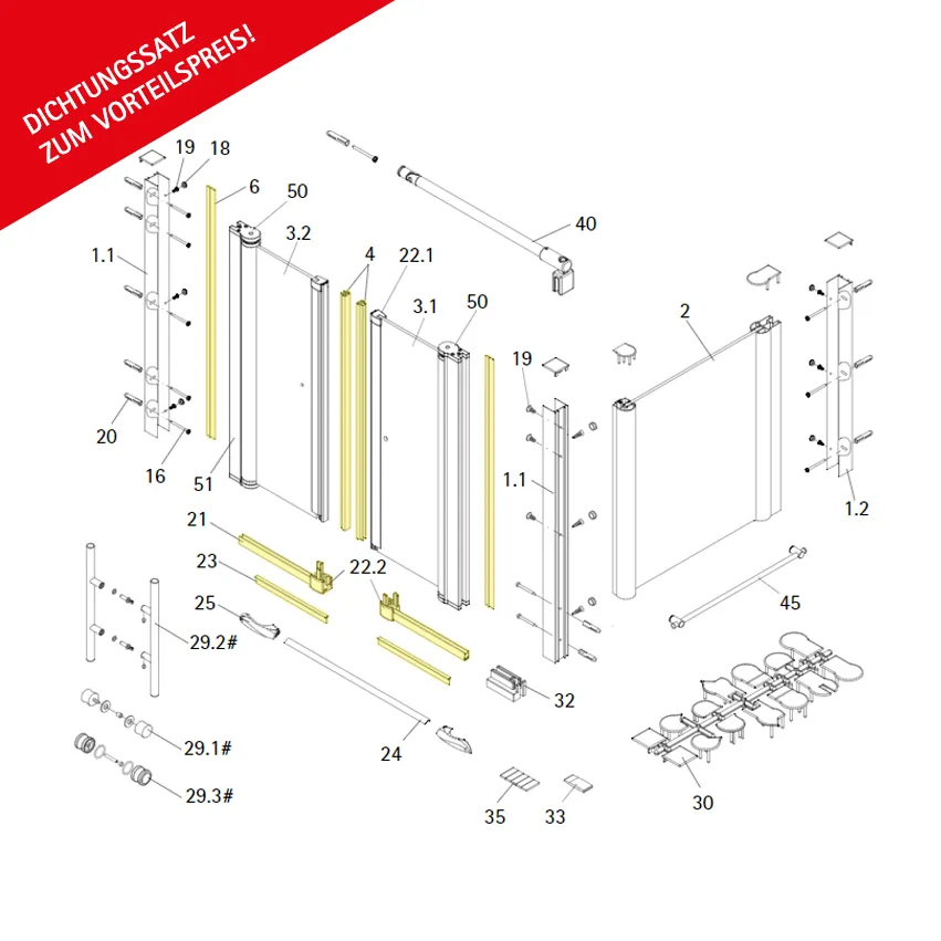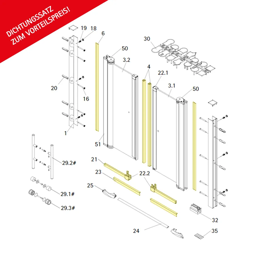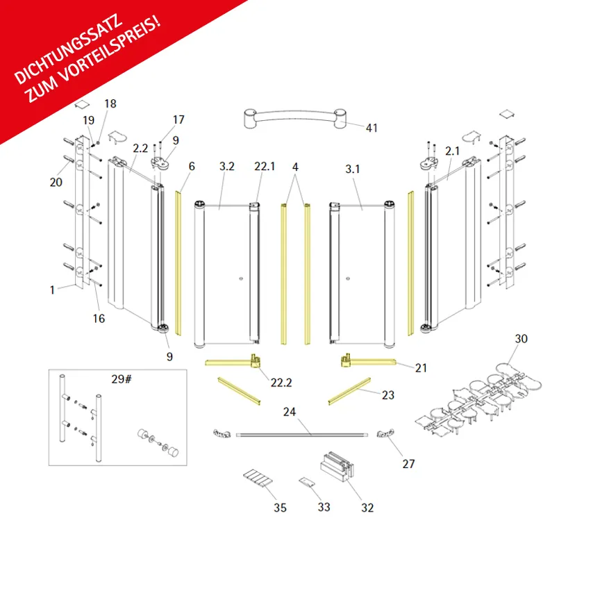 Dichtungssatz für 6mm Fünfeckdusche (Chromoptik)