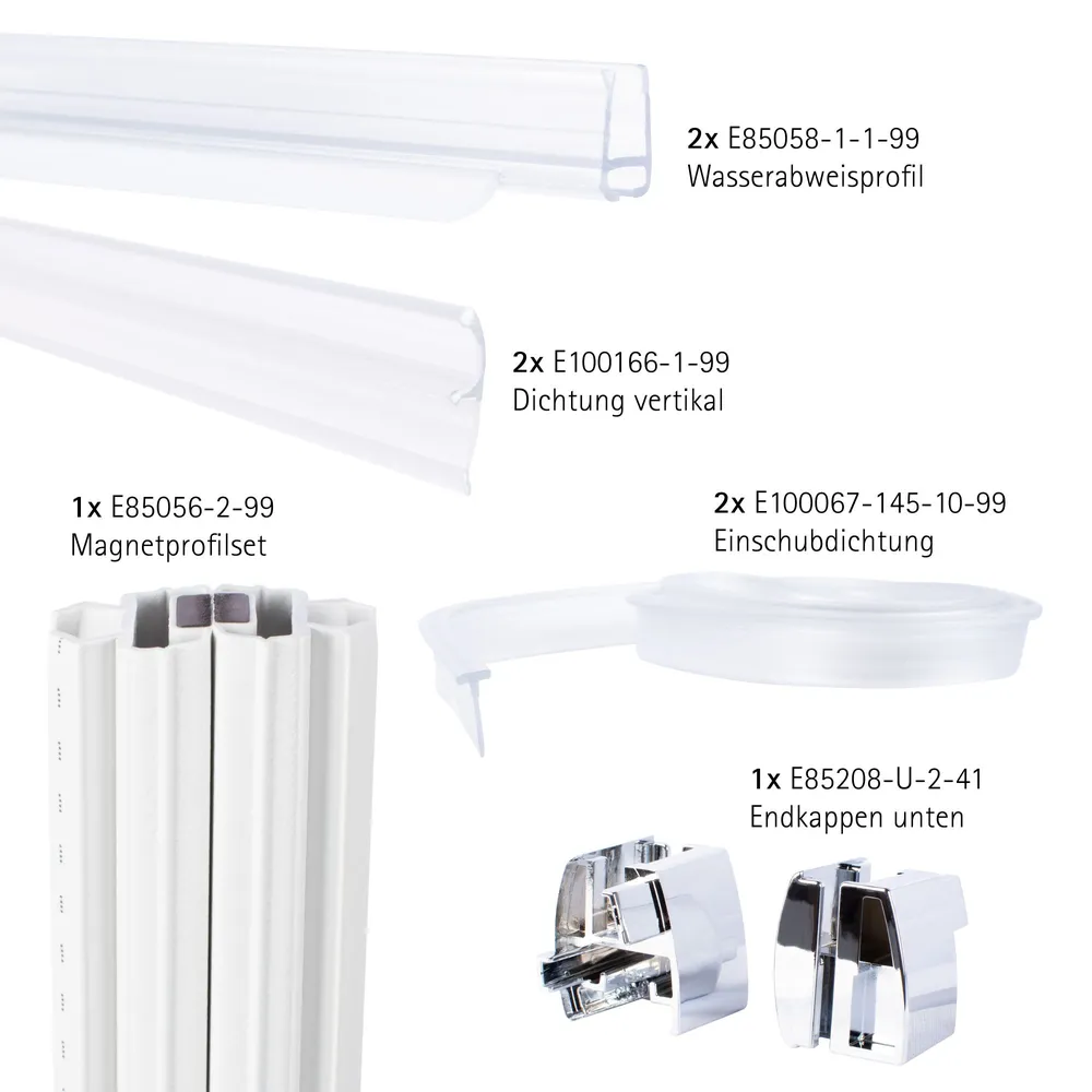 Zur kompletten Erneuerung der Abdichtungen Ihrer Fünfeckdusche aus der Serie Garant. Mit dem Einsatz dieses Dichtungssatzes wird ein zuverlässiger Spritzschutz erreicht.
