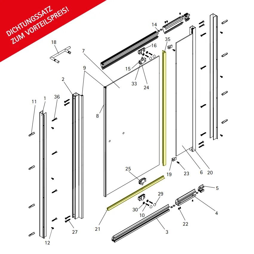 Dichtungssatz für Drehtür an Nebenteil variabel