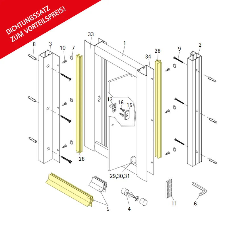 Zur kompletten Erneuerung der Abdichtungen Ihrer Drehtür aus der Serie Kristall/Trend. Mit dem Einsatz dieses Dichtungssatzes wird ein zuverlässiger Spritzschutz erreicht.