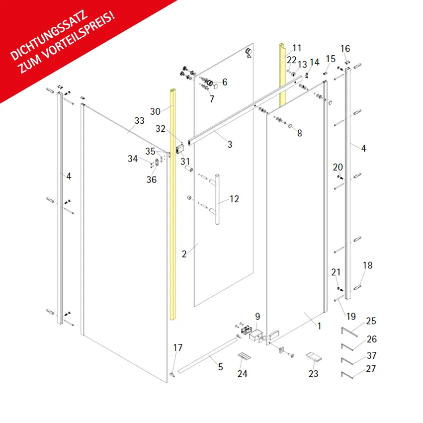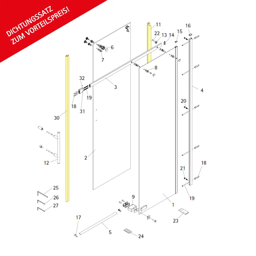 Zur kompletten Erneuerung der Abdichtungen Ihrer Schiebetür in Nische aus der Serie Alexa Style 2.0. Mit dem Einsatz dieses Dichtungssatzes wird ein zuverlässiger Spritzschutz erreicht.