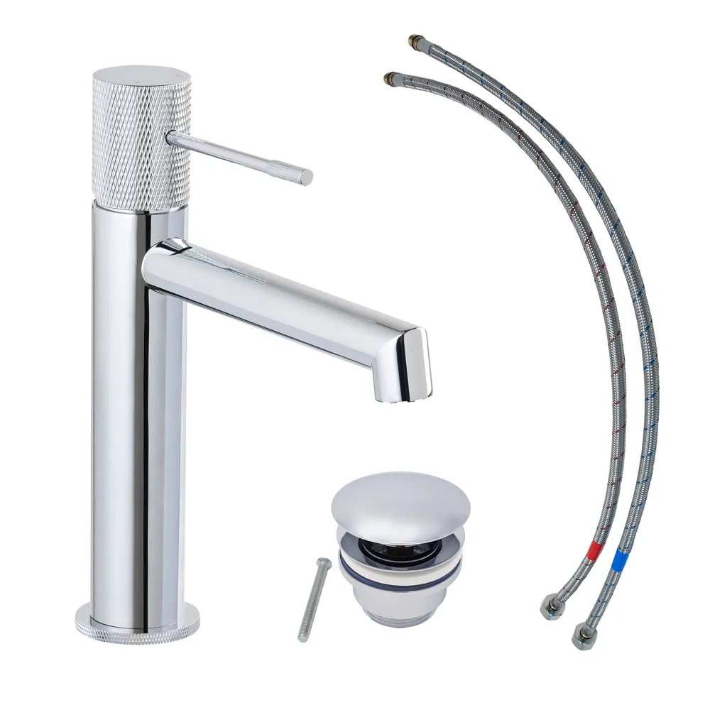 Einfache und sichere Montage dank Kombi-Ablaufgarnitur und DVGW-zertifizierten Anschlussschläuchen (2 × 40 cm).