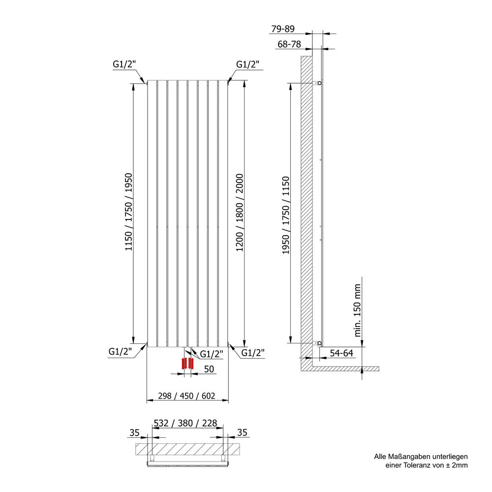 • Heizkörper sind für die Installation an massiven Wänden bestimmt. Bei einer anderen Verwendung ist bauseitig für eine entsprechende stabile Unterkonstruktion zu sorgen.