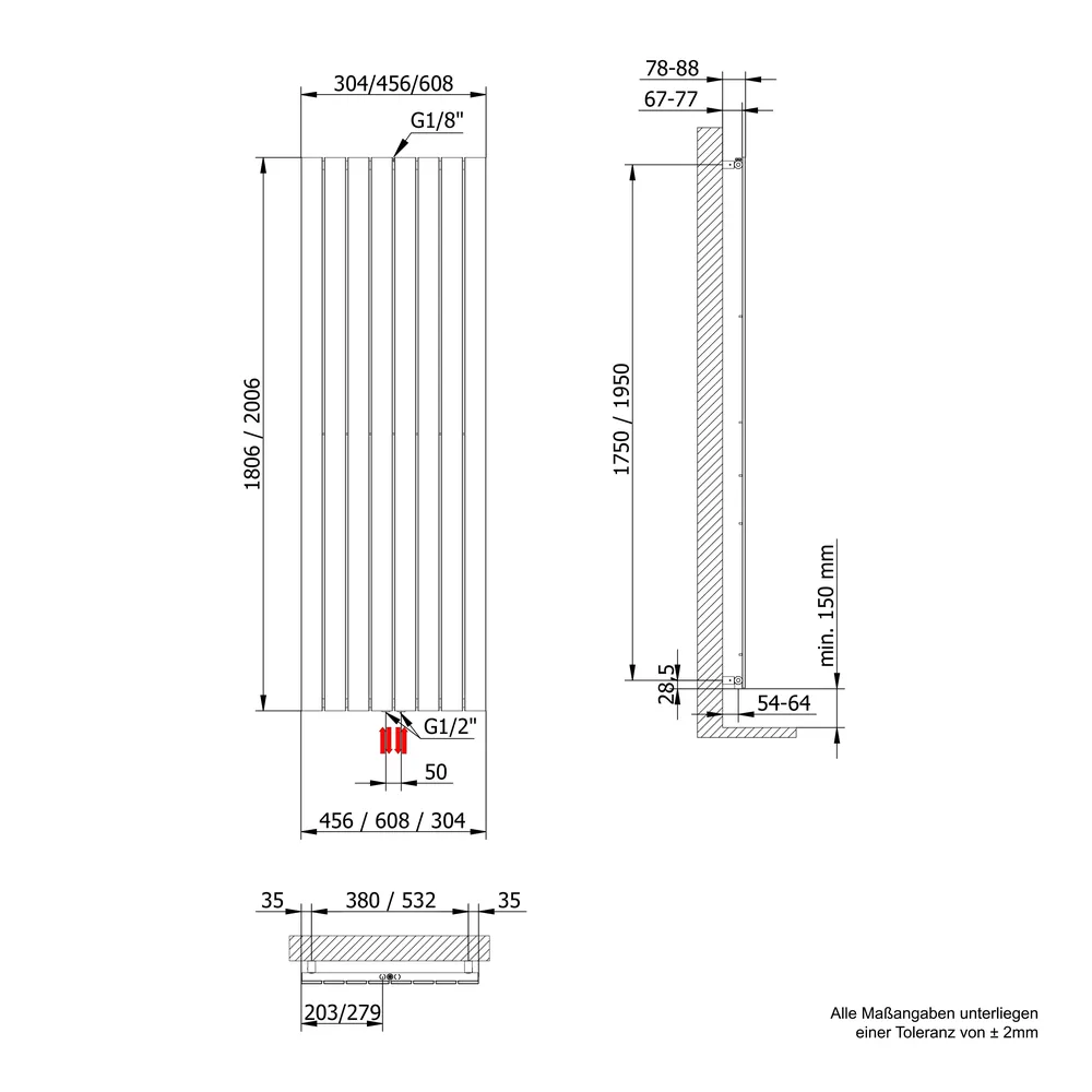 • Heizkörper sind für die Installation an massiven Wänden bestimmt. Bei einer anderen Verwendung ist bauseitig für eine entsprechende stabile Unterkonstruktion zu sorgen.