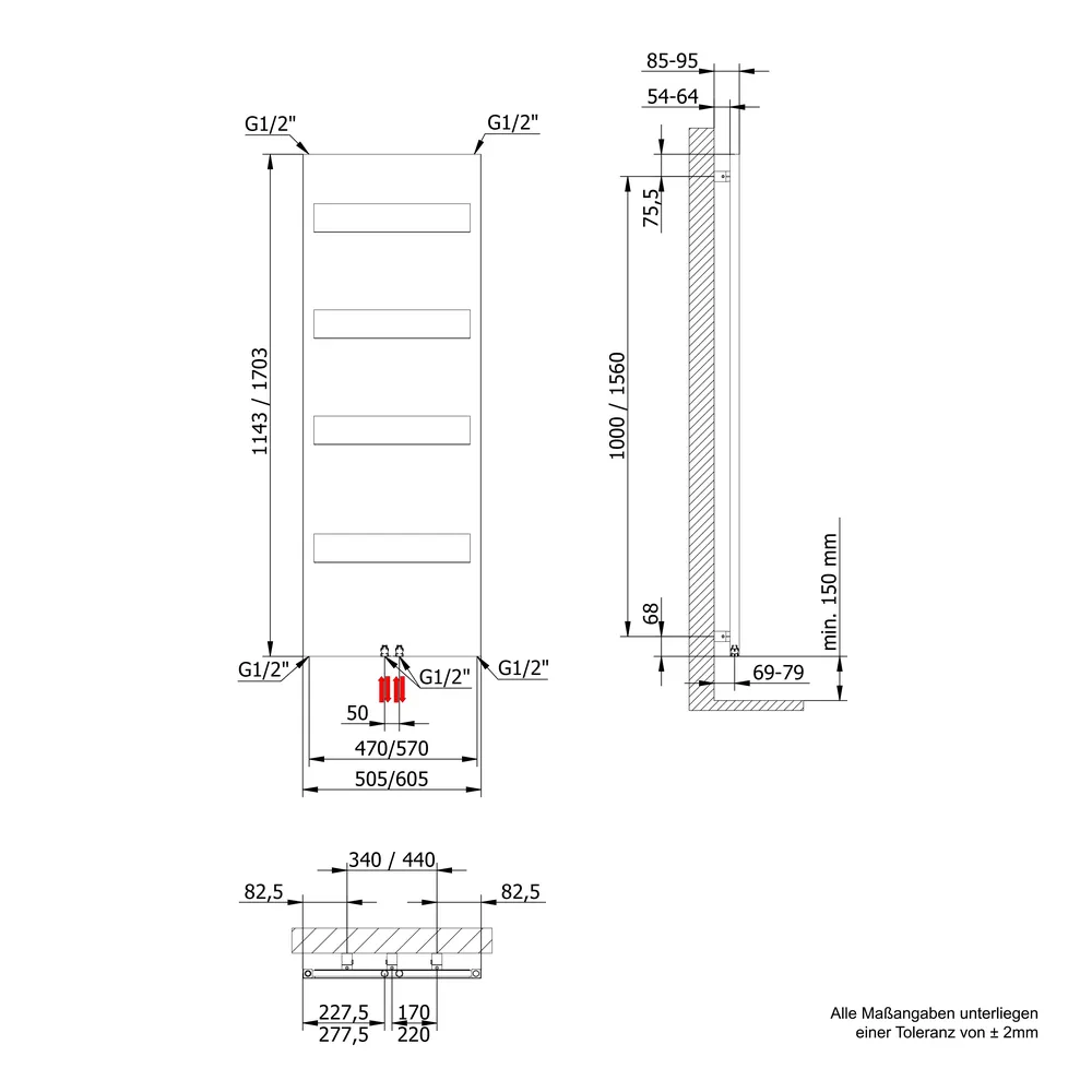 • Heizkörper sind für die Installation an massiven Wänden bestimmt. Bei einer anderen Verwendung ist bauseitig für eine entsprechende stabile Unterkonstruktion zu sorgen.